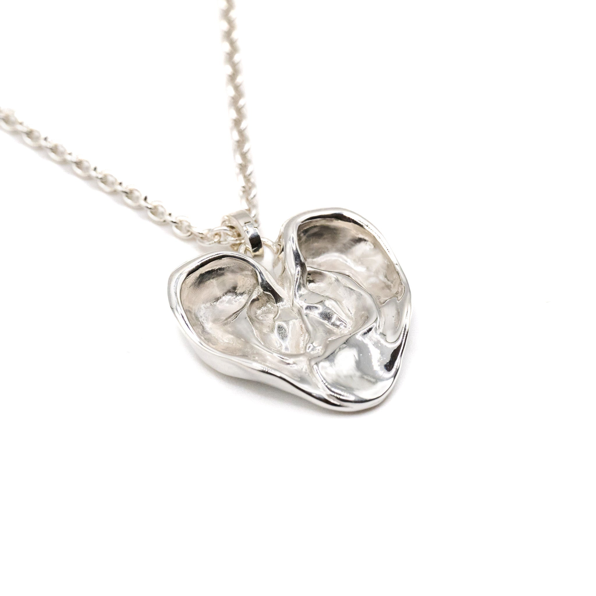 Medium heart necklace in 100% recycled sterling silver.